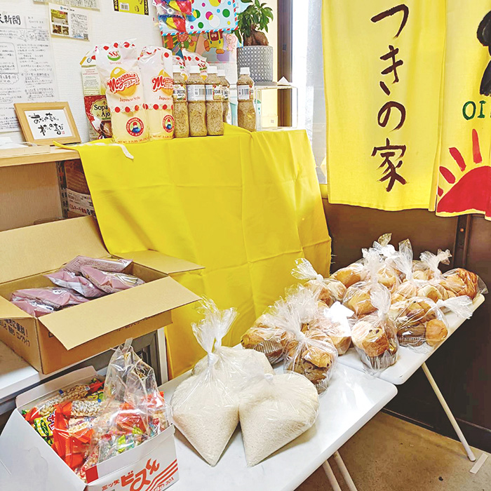 岐阜県こどもの居場所応援センターから提供いただく、賞味期限が当日のコストコのパン・お米・お菓子、地域の方々からいただいたお野菜や食材を支援が必要なご家庭にお配りしています。
