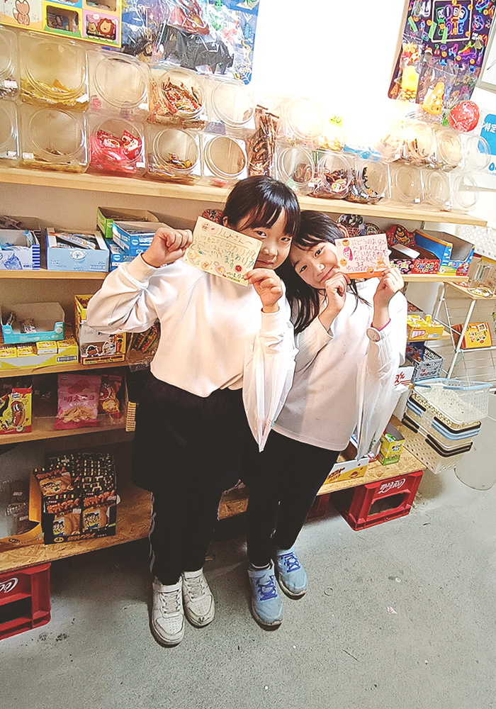 地域の方の支援によるつきチケットを使い、0歳から高校生までの子どもが1日200円分の駄菓子を無料で購入できるお店です。